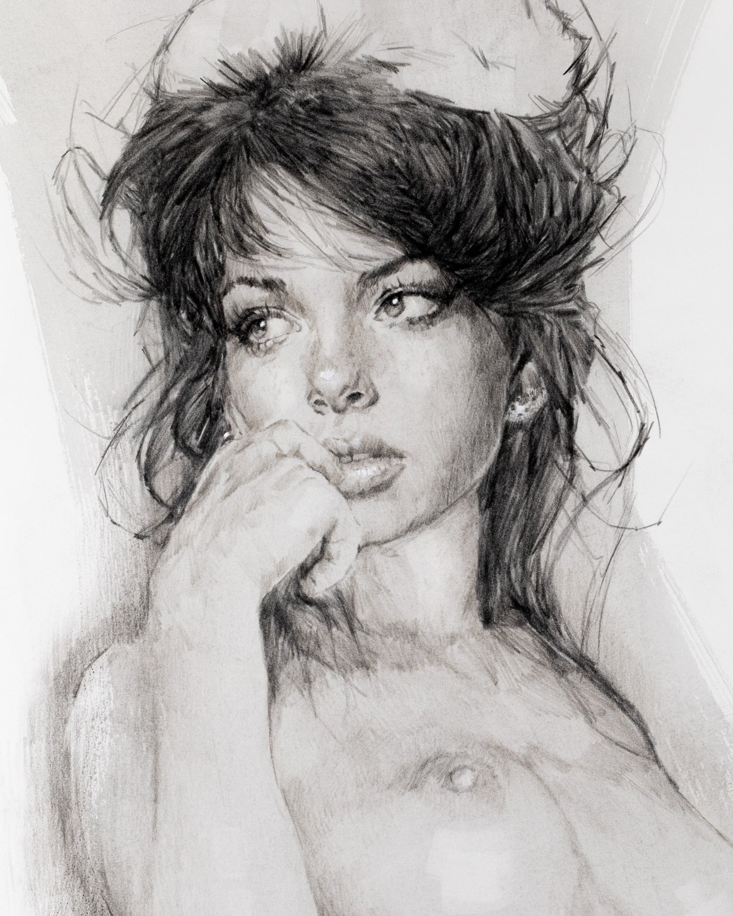 "One-of-a-kind studies in human narrative. Hand-rendered using professional-grade charcoal, graphite, and mixed media on archival cotton rag. These are the singular, physical souls of the studio."